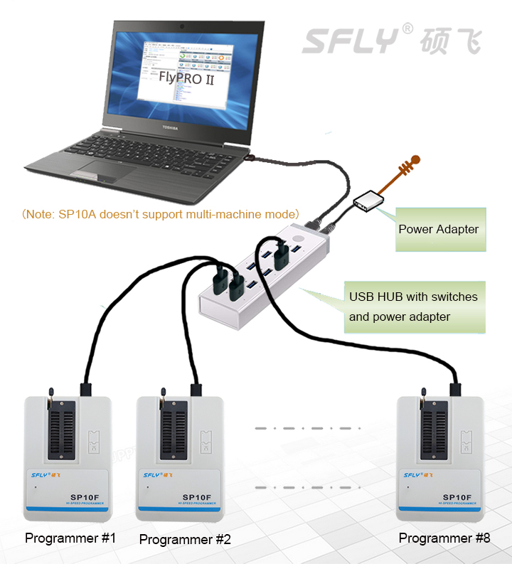 SP10 series (SP10A/SP10B/SP10F) programmers are the latest highspeed mass production programmers for SPI FLASH launched by Shenzhen SFLY Technology. It is the upgraded version of SP8 series, which can support supports the high-speed programming of SPI NOR FLASH, I2C / MicroWire and other EEPROMs from domestic and foreign manufacturers.