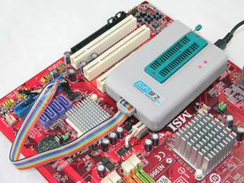 支持在線編程(ISP) ● 對一些貼片芯片,可以直接采用ISP進行燒錄,免除拆焊的麻煩 ● SP8全系列附帶專用ISP接口采用專用芯片進行緩沖,支持2.0V~5.5V目標板(芯片) ● ISP接口可通過軟件設置是否對目標板供電,供電電壓3.3V或5V(可設置) ● ISP供電附帶過流/短路保護功能,并自動檢測目標板供電情況,避免供電沖突 ● 可用于電腦主板的BIOS的在線升級(應用實例:用SP8-A編程器在線升級微星MS-7392主板BIOS )