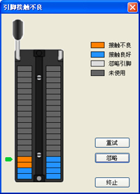 ● 圖形化提示引腳接觸狀態,包括接觸不良的引腳、接觸良好的引腳、未使用的引腳和忽略的引腳