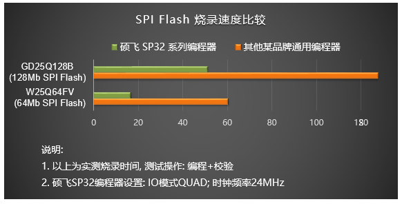 支持SPI FLASH的QUAD、DUAL、標(biāo)準(zhǔn)SPI模式 DUAL: 雙通道模式, 同時使用兩條IO進(jìn)行數(shù)據(jù)傳輸, 傳輸速率是標(biāo)準(zhǔn)SPI的2倍 QUAD: 四通道模式, 同時使用四條IO進(jìn)行數(shù)據(jù)傳輸, 傳輸速率是標(biāo)準(zhǔn)SPI的4倍 目前市面上大多數(shù)編程器(包括碩飛之前的SP8/SP16系列)都只能支持標(biāo)準(zhǔn)SPI模式