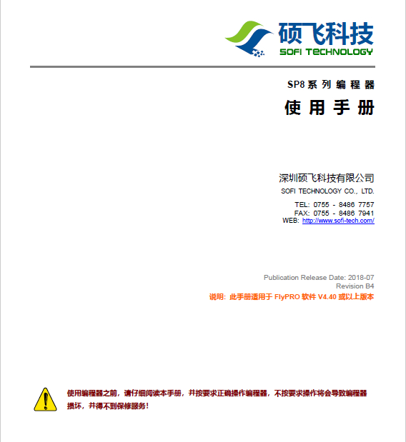 碩飛SP8系列編程器使用說明書(中文版 RevB5 ),PDF格式