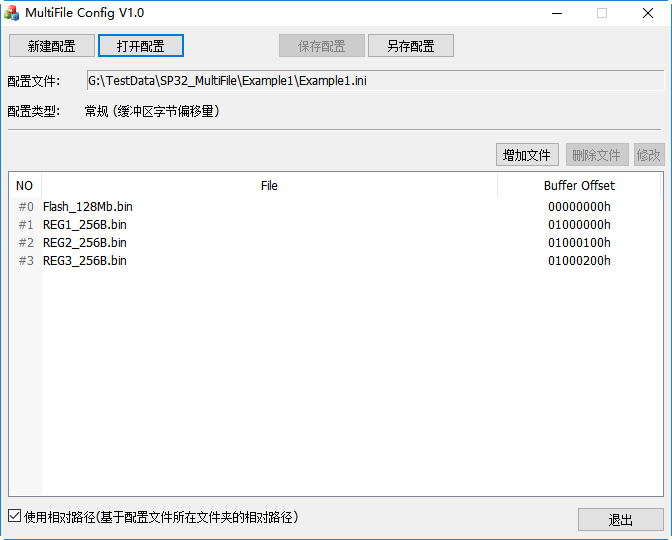 使用MultiFileConfig軟件創(chuàng)建一個(gè)配置文件(擴(kuò)展名為ini的文本文件), 設(shè)置相關(guān)文件參數(shù)。如下圖所示: